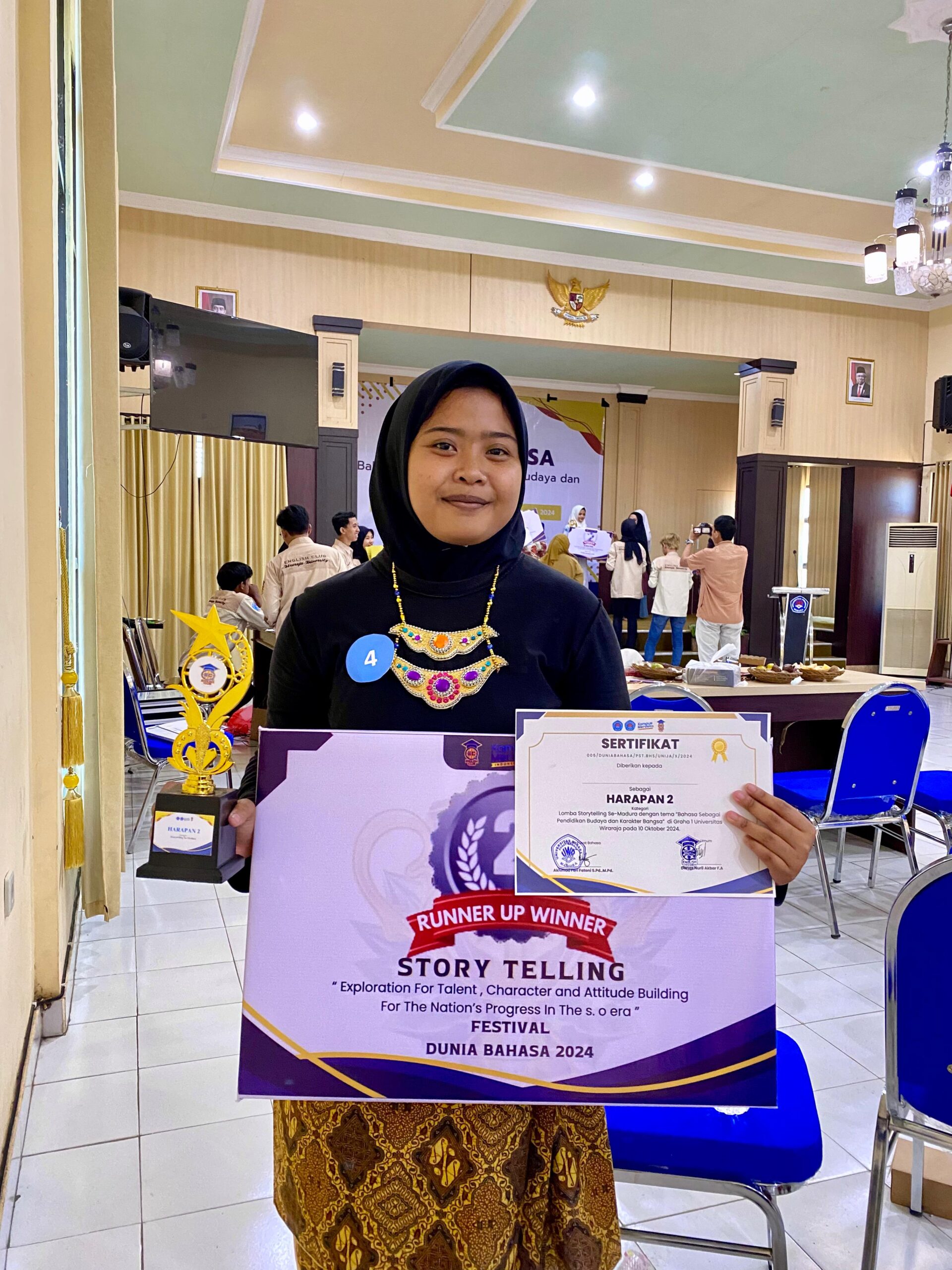 juara Harapan 2 Lomba Story Telling se-Madura yang digelar Pusat Bahasa Universitas Wiraraja Sumenep 2024 juara Harapan 2 Lomba Story Telling se-Madura yang digelar Pusat Bahasa Universitas Wiraraja Sumenep 2024
