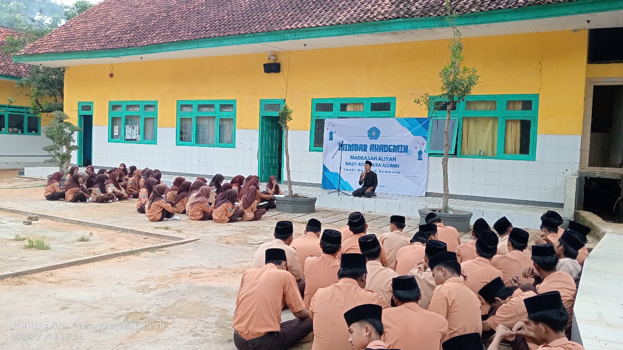 Dungkek, nasymut.id — Ahad pagi, 12 Januari 2025, halaman MA Nasy-atul Muta’allimin dipenuhi semangat literasi dari para siswa. Mimbar Akademik semester genap resmi dimulai, dengan pertemuan perdana yang diisi oleh kegiatan Ngobrol Sastra. Fadhli, salah satu guru MTs Nasy-atul Muta’allimin, hadir sebagai pemateri, membawa tema inspiratif tentang seni menulis puisi.