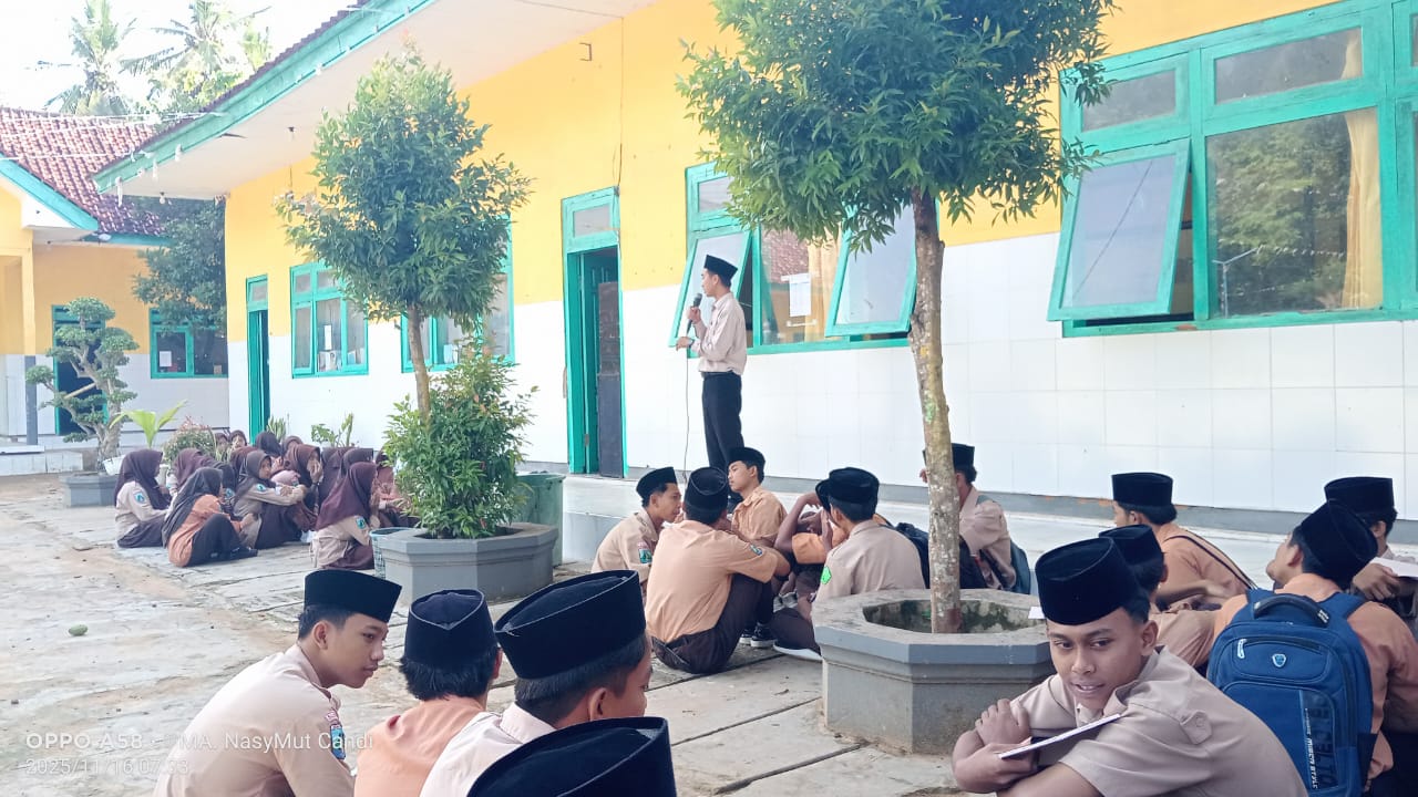 Dungkek, nasymut.id — MA Nasy-atul Muta’allimin kembali menggelar kegiatan rutin Mimbar Akademik pada Ahad, 16 November 2025, yang berlangsung di halaman madrasah. Pada kesempatan tersebut, Wakil Kepala Madrasah Bidang Kurikulum, Ach. Kholish, M.Sc., memberikan pengarahan penting kepada seluruh siswa terkait pelaksanaan mimbar akademik, sekaligus memperkenalkan format penampilan baru yang akan diberlakukan mulai semester depan.